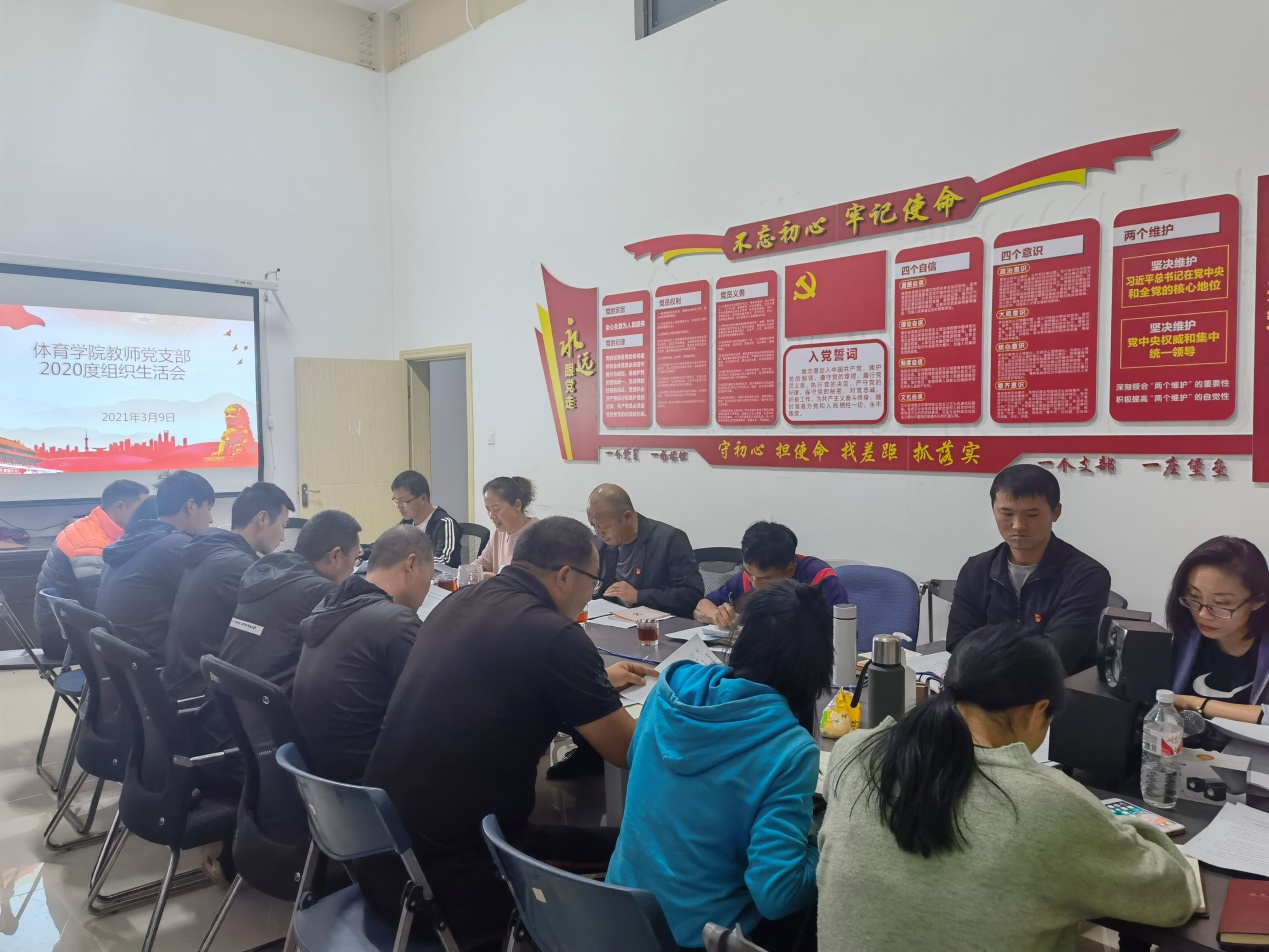 2021年3月9日下午,体育学院教师党支部召开了专题组织生活会和民主评议党员会议,教师支部全体党员参加了会议,会议由支部书记张红同志主持,分管领导副校长李险峰同志参加了此次会议。