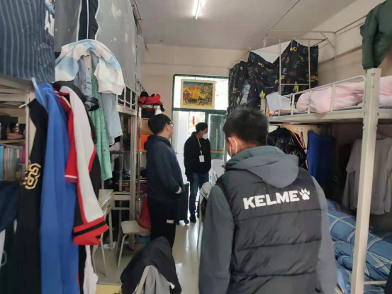 随后,党员教师又到学生宿舍检查慰问,看望新返校的同学们。对同学们提出新学期的殷切希望,对学风建设、宿舍氛围,疫情防控等提出要求。