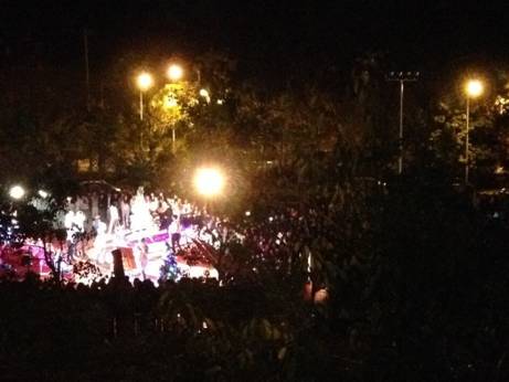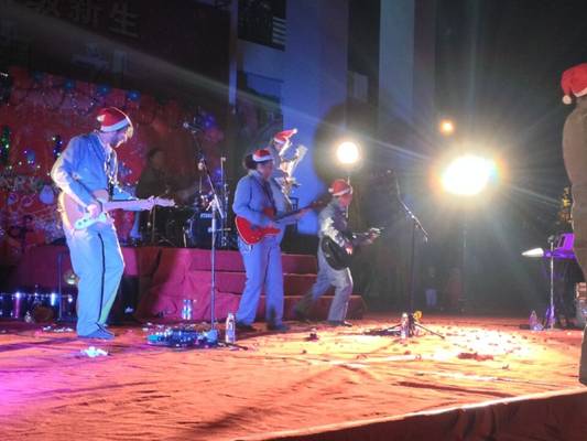 2014年12月24日晚七点半至九点半,由外国语学院主办的2014 年圣诞晚会在东区食堂广场拉开帷幕。圣诞节(Christmas)本身是一个宗教节,用来庆祝耶稣的诞辰,因而又名耶诞节,是西方国家一年中最重要的节日。圣诞节送礼物已经接近成为一个全球通行的习惯了。在英籍美国人的传统中,圣诞老人总是快活的在圣诞前夜乘着驯鹿拉的雪橇到来,从烟囱爬进屋内,留下给孩子们的礼物,吃掉孩子们为他留下的食物。本次圣诞节,我院携手美国I U 乐队共同打造盛世演唱会。党总支书记王江华、副院长柴树虹、外国语学院教师及学校其他老师出席本次晚会,广大学生前来观看。本次晚会现场气氛活跃,观众积极响应,嗨翻全场。