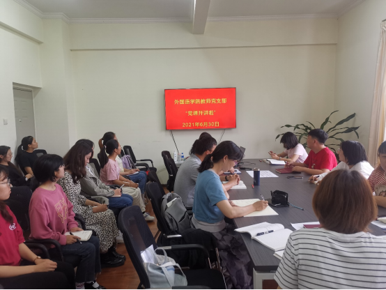 为庆祝中国共产党成立100周年,引领全体师生党员知史爱国、知史爱党,凝聚干事创业发展合力,2021年 6月30日,外国语学院举行“听党话、感党恩、跟党走”“七一”庆祝活动。学院党总支书记、副书记、副院长及全体师生党员参加活动。