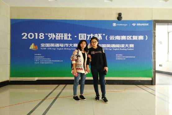 经过紧张地比赛,孙佳慧同学获得2018“外研社杯”全国英语阅读大赛省级复赛(云南赛区)一等奖,张艳同学获得2018“外研社杯”全国英语写作大赛省级复赛(云南赛区)三等奖。