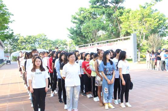 外国语学院的同学们陆续来到升旗台旁并有序地排队,精神饱满地等待着国歌响起,五星红旗飞扬。