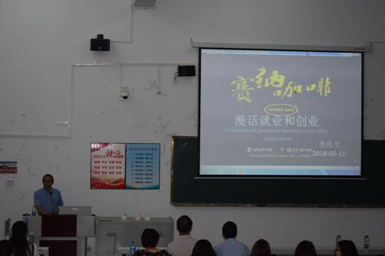 5月11日下午3点,普洱塞纳咖啡有限公司总经理李洪方先生受邀莅临我院为2018届毕业生做了题为“漫话就业和创业”的专题讲座。讲座由王江华书记主持。外国语学院柴树虹副院长、廖新丽老师、李本福老师、杨洋老师、塞纳咖啡员工亦是我院毕业生鲁建贤女士及我院一百余名毕业生聆听了讲座。