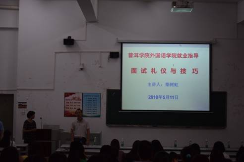 5月11日下午4点30分,外国语学院就业指导专题讲座在敏学1号楼314教室举行。外国语学院柴树虹副院长为2018届6个班级一百余名毕业生做了题为“面试礼仪与技巧”的专题讲座。讲座由王江华书记主持。