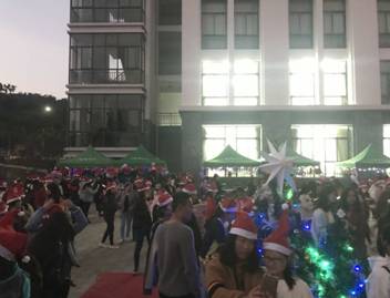 为了丰富学生校园生活,增进同学之间的友谊,创造良好的校园文化环境,让同学们感受到浓郁的节日气氛,由外国语学院主办、英语俱乐部和英语角协办的圣诞活动于2017年12月24日晚19点在敏一小广场隆重举行。