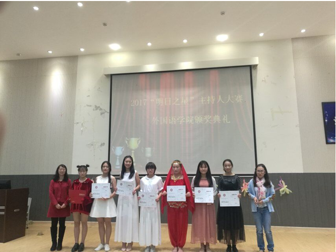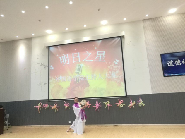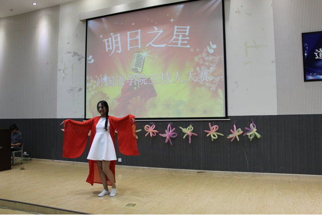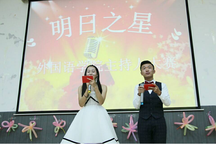 为丰富我院学生校园文化生活,营造良好的校园文化氛围,展现我院学子青春、热情、富有活力的风采,锻炼大学生交际反应能力,提高大学生“不止能写,更是能说”的综合素质,为我院各类文体活动挖掘和选拔优秀的学生主持人,由外国语学院主办的“明日之星”主持人大赛于11月10日隆重举行。此次比赛邀请了我院廖新丽等7位老师担任评委。