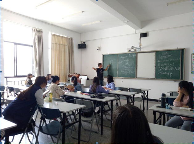 同学们满怀热情,积极报名。德国志愿者Sascha为了让同学们更灵活的安排时间来学习,特别开设了四个班级。在课堂上, Sascha 讲课幽默风趣,激发了同学们的求知欲和好奇心,他鼓励每个同学主动开口说德语。同时,他采用不同形式的活动来练习所学内容,如两人对话、小组讨论、角色扮演等。同学们全心投入,收获颇丰。