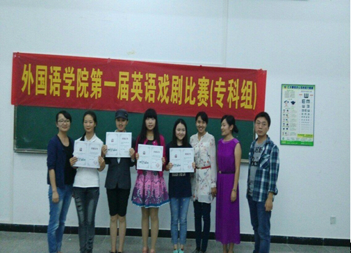 2015年5月22日由外国语学院主办的英语戏剧表演比赛圆满结束。此次比赛得到了院领导、全体教师、院学生会及2013、2014级各教学班级的大力支持。比赛给同学们提供了一个锻炼英语口语实践能力、展现自我的平台,各班同学积极性很高,赛前做了充分的准备,或引用名著桥段、或演绎经典童话、或改编电影、电视剧情节。同学们精彩的表演赢得了老师和同学们的肯定和赞扬,现场掌声连连。经过激烈的角逐,评出以下奖项: