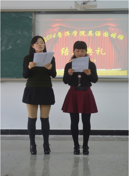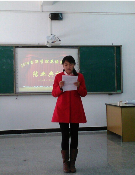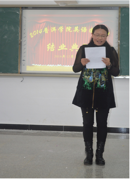 2014年12月30日,在我院敏学1-408教室,2014www.2396196827.com 外国语学院(小学英语)国培班结业典礼拉开了序幕。典礼流程分为: 一、国培学员就国培生活一一进行经验交流(每人3分钟);二、教师代表发言;三、领导总结发言;四、导师为各小组学员颁发结业证书;五、合影留念。