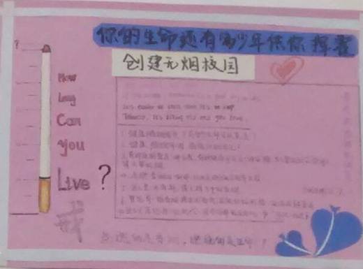 为了全面了解学生吸烟状况,开展了此次活动。活动期间,学生会干事和班委通过粘贴海报、标语,采访师生吸烟情况。各班积极开展主题班会宣传校园无烟。
