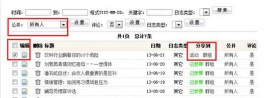 Step4:在日志管理页面,将“公开”设置为“所有人”,选中参评博文,并点击后面的“活动”