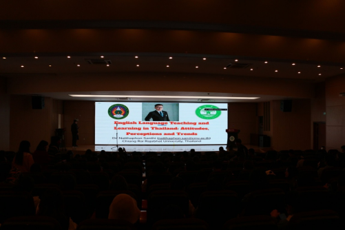 讲座上,Dr. Natthaphon Santhi语言幽默,讲座内容丰富,他从英语语言结构和英语语言应用等方面入手,进一步详细阐述了英语教学研究的发展趋势。此外,他还结合泰国乃至东南亚各国情况,向大家介绍了英语在当地的普及态势以及英语教学的相关发展,包括教学方法、教师专业方法、学生、课程等相关内容。Dr. Natthaphon Santhi的讲座内容生动详实,研究路径严谨清晰,在问答环节,Natthaphon Santhi教授耐心、细致地回答了陈院长提出的问题并与他进行了热烈地交流。