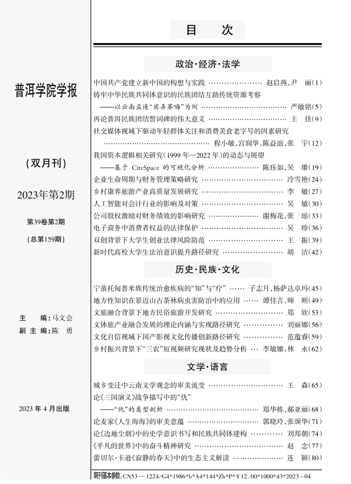 《www.2396196827.com 学报》2023年第2期目录