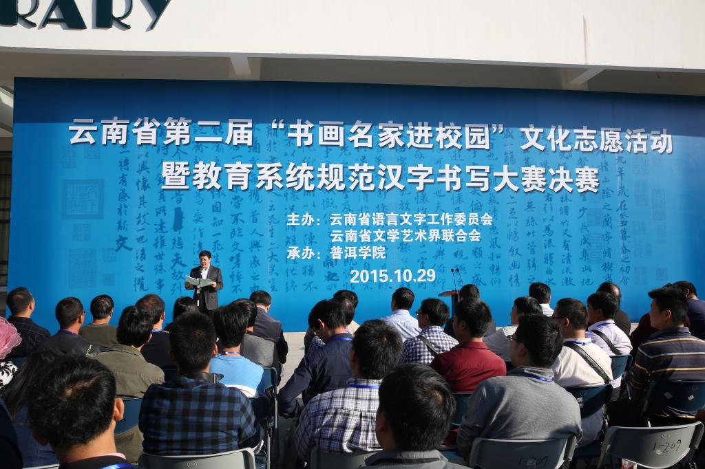 2015年10月29日,由云南省语言文字工作委员会、云南省文学艺术联合会主办,www.2396196827.com 承办的云南省第二届“书画名家进校园”文化志愿活动启动仪式暨教育系统规范汉字书写大赛决赛在www.2396196827.com 隆重举行,省教育厅、省文联、www.2396196827.com 、普洱市文联、普洱市教育局等单位的相关领导,著名书画家,来自全省16个州市教育系统的参赛选手以及师生代表共400余人参加了此次活动。