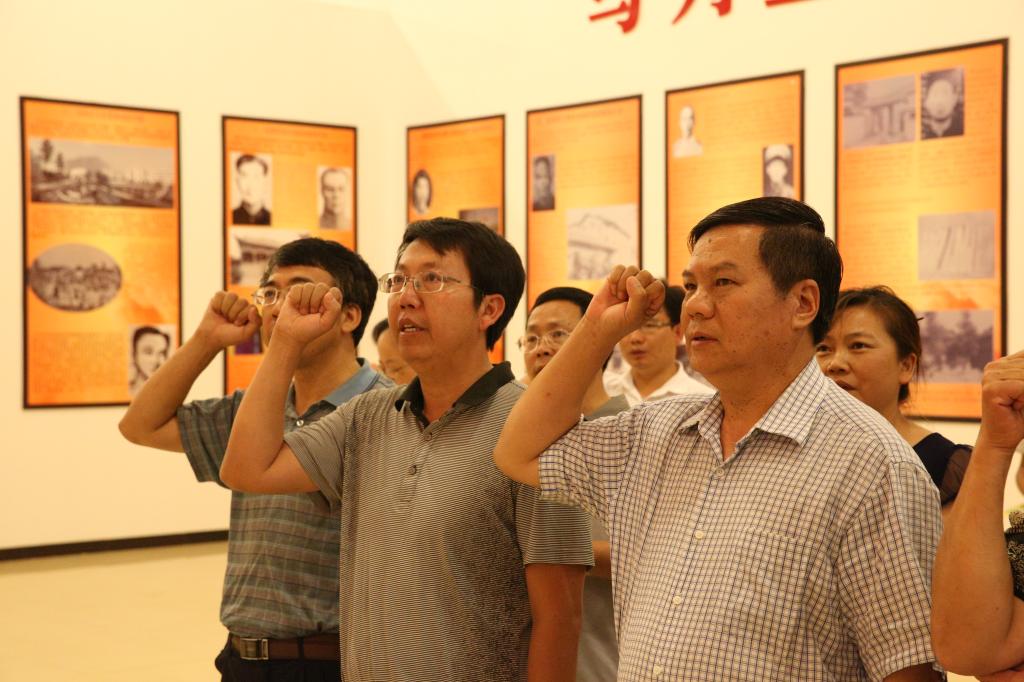参观结束后,参加活动的师生在展室重温入党誓词,并高唱了《国际歌》。