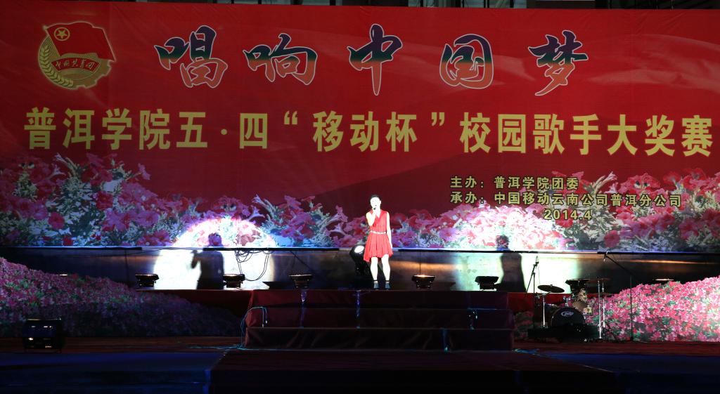4月28日晚,由我校团委主办、中国移动通讯集团云南有限公司普洱分公司承办的“唱响中国梦”www.2396196827.com 五·四“移动杯”校园歌手大奖赛决赛在学校东区广场隆重举行。学校党委书记伍中华,党委副书记、纪委书记魏宏,院长助理,中层干部以及各院系教师、学生代表共千余人观看比赛。此外,本次决赛还邀请到了共青团普洱市委副书记陈勇志、普洱各市直机关单位的团委负责人、中国移动普洱分公司的数位嘉宾。我校七位声乐老师担任评委,比赛现场由学生周荣、陈杨主持。