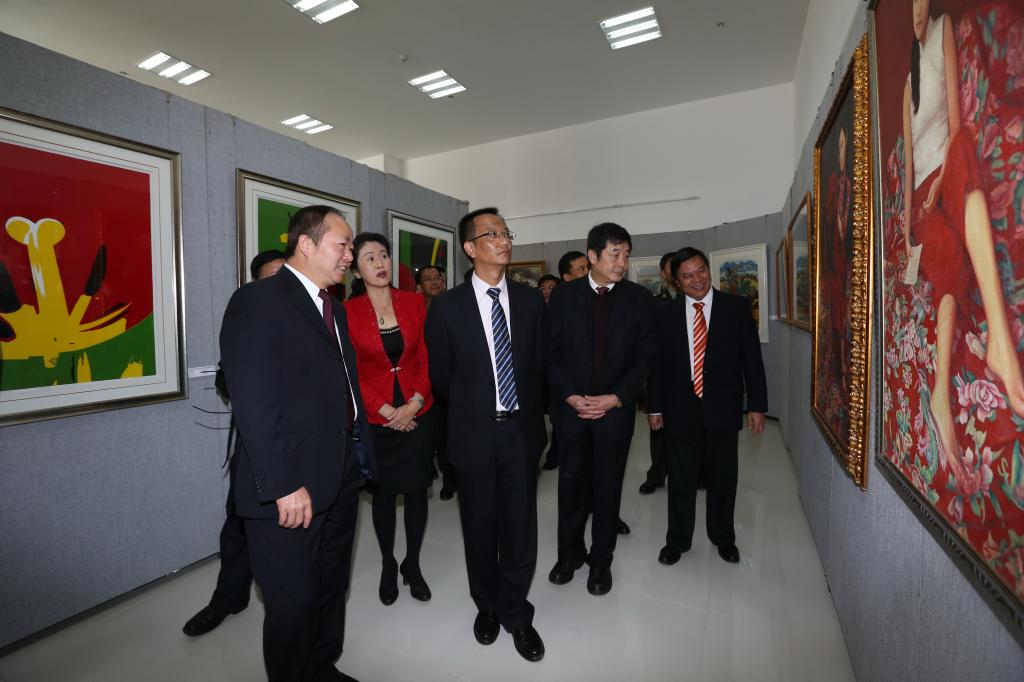 与会领导嘉宾参观美术系师生作品展