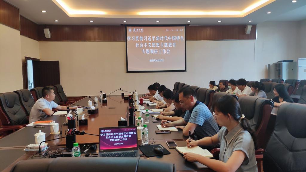 为扎实推进学习贯彻习近平新时代中国特色社会主义思想主题教育,6月27日,党委委员、副院长李祖军到人事处、教师教学发展中心开展主题调研,召开调研座谈会,听取师资队伍建设、绩效改革、岗位聘任、师德师风、教师培训等工作情况,分析存在的困难和问题,提出下一步工作建议。