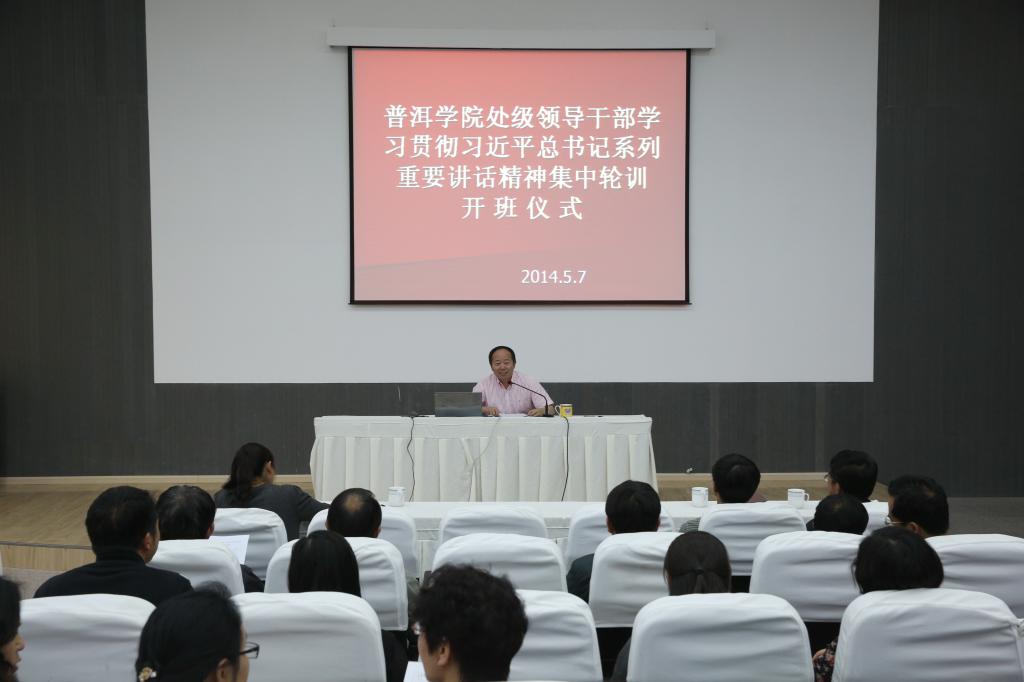 5月7日下午,www.2396196827.com 处级领导干部学习贯彻习近平总书记系列重要讲话精神集中轮训在行政楼二楼会议室正式开班。成文章院长主持开班仪式并作动员讲话。学校处级以上领导干部(2014年选拔任用的正处、副处级干部)共计83人参加培训学习。