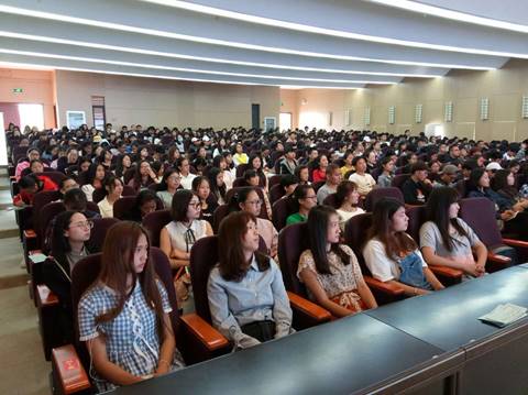 张晓天主任医师结合自己多年从医的经历和对当下青年人群健康状态的思考,分析了目前青少年由于不良生活习惯所导致的健康问题以及食品安全给大家生活带来的健康隐患。随后,张晓天医师结合我们日常生活,生动形象地向听讲师生介绍了青年在饮食、锻炼方面的保健知识,并特别提醒大家一定要重视饮食的卫生,谨防“病从口入”。最后,张晓天主任医师倡导大家从学习、工作、生活里的每一个细节做起,大家一起来“养生”。