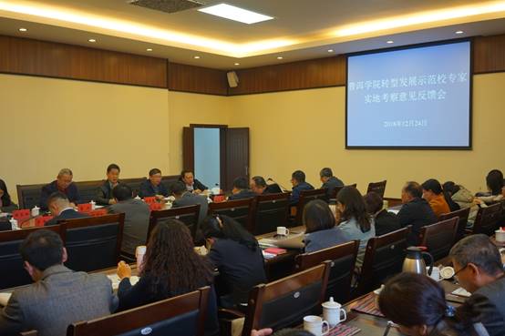 与会专家组认为:市委市政府高度重视学校的发展,学校领导对应用型转型认识到位,措施得力;办学定位清晰、目标明确;学校应用型氛围浓厚,基础设施完善;在产业教融合、校企合作、国际化办学等方面有特色、有亮点;转型试点成效明显,文化传承和创新的显示度得到增强。专家组还对应用型试点办学进行交流。