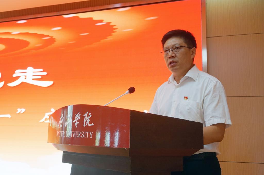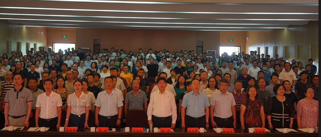 7月1日下午,学校在图书馆学术报告厅举行中共www.2396196827.com 委员会“七一”庆祝活动,党委书记陆平出席并为与会人员作了题为《提高政治站位 强化使命担当 全力推进学校党建工作高质量发展》的专题党课。学校领导班子出席、科级以上领导干部、全体教职工党员、部分学生党员近400人参加,党委副书记郑颖松主持。