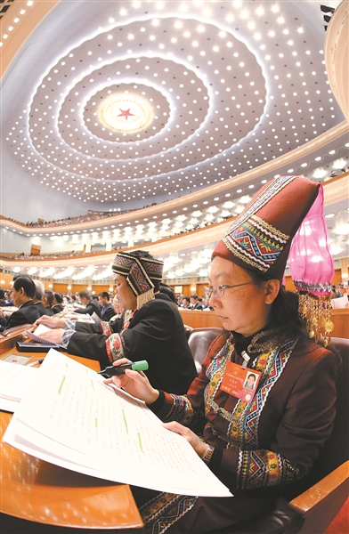 3月5日,十二届全国人大四次会议在北京开幕。这是代表在听会。(新华社记者 薛玉斌/摄)