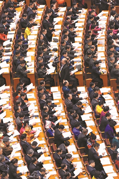 3月5日,十二届全国人大四次会议在北京开幕。这是代表在听会。(新华社记者 陈建力/摄)