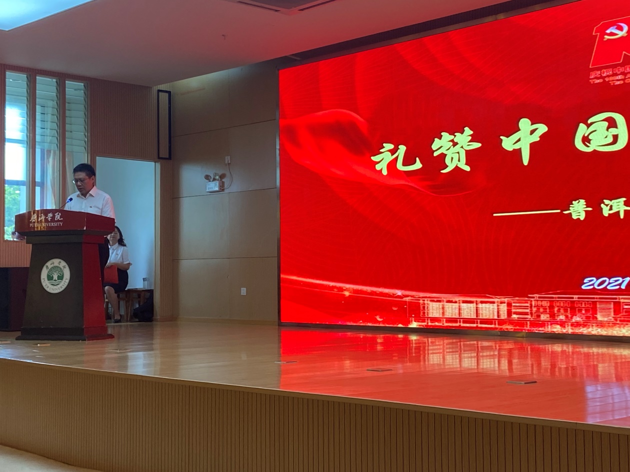 为推进我校党史学习教育走深,展示我校辅导员风采,献礼建党百年,2021年6月28日下午3:00学生处组织举办了2020-2021学年第八期(总第16期)辅导员论坛,论坛以“礼赞中国 诗颂百年”为主题。学校党委副书记郑颖松出席论坛并致辞,省委教育工委省教育厅党组党史学习教育第一轮巡回指导组章小丽、文仕军两位专家、学校副校长李险峰、学工部部长高龙、宣传部副部长杨萍出席,全体专职辅导员、部分学生代表参加了本期论坛。