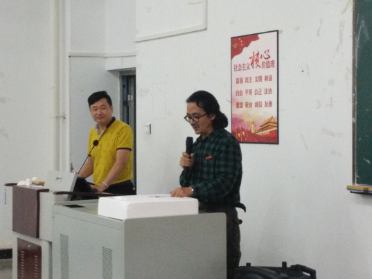 本次典礼由艺术学院副院长韩兴老师作为典礼主持人,典礼第一部分,全体起立,奏、歌唱国歌,接着韩老师向全体新生一一介绍了本学院的教师成员。