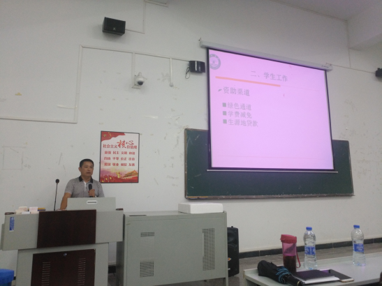 典礼第二部分,张晓春院长致词,张老师就我院的建设情况、师资力量、学科分布、培养目标、特色教学、地域优势等内容进行了全方面的介绍,鼓励新生在新的校园环境里积极认真学习、完善提高自我。