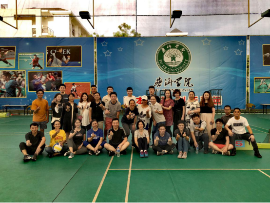 下午15:00--16:30全体教师在固本楼二楼会议室进行院级第一次教研活动;下午16:40--18:30,响应学校的号召,我院工会组织全院教师在学校网球场进行“双节”气排球友谊赛,老师们积极性较高、几乎全员参与了比赛。