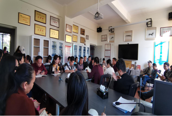 此次会议由艺术学院党总支书记段群勇老师主持,参会人员有www.2396196827.com 党委第三巡察组组长叶敏老师、组员龙顺华老师及王淼老师,以及艺术学院全体教师。