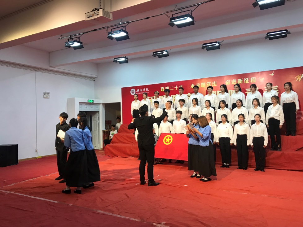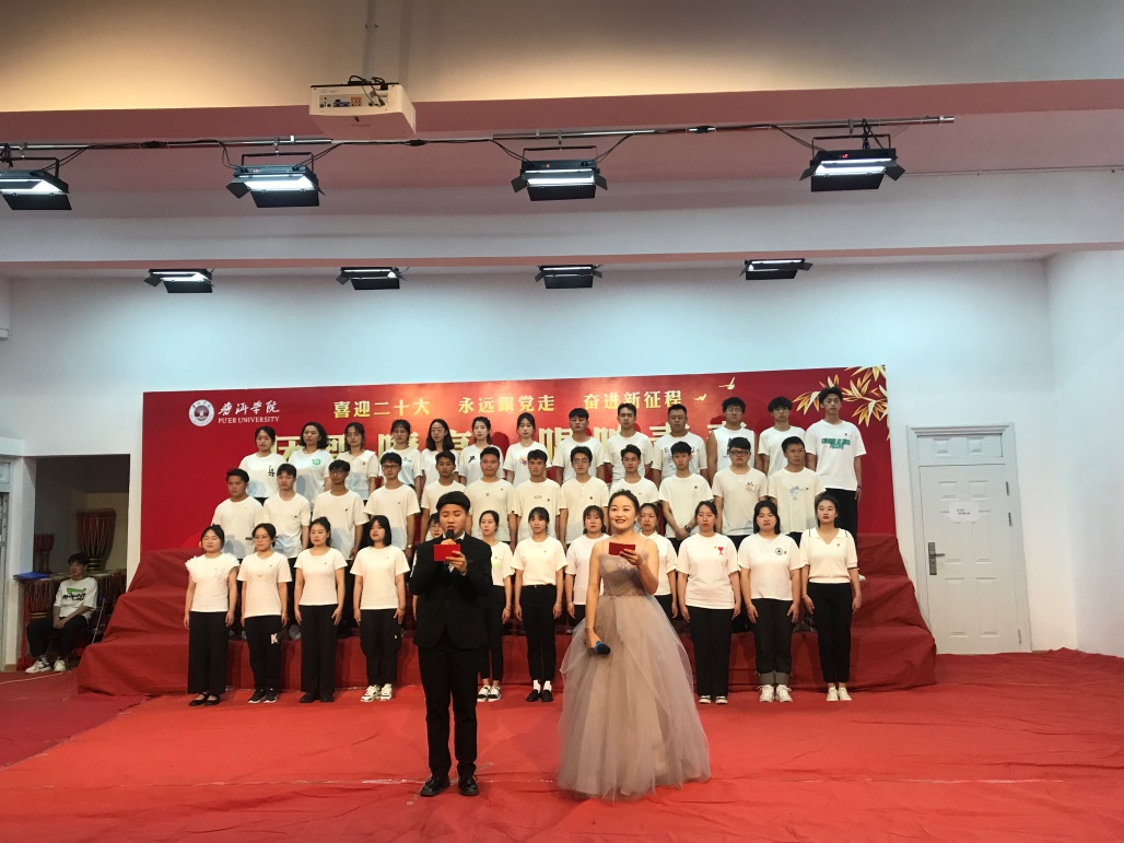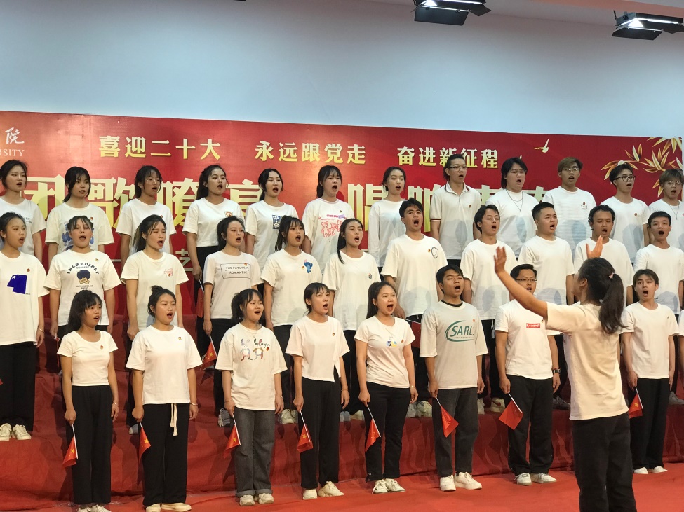 2022年4月22日,由艺术学院团总支组织的“团歌嘹亮,唱响青春”唱团歌比赛在韶韵楼106演播厅举行,全院21个班级参加了比赛,音乐系声乐组教师担任评委。