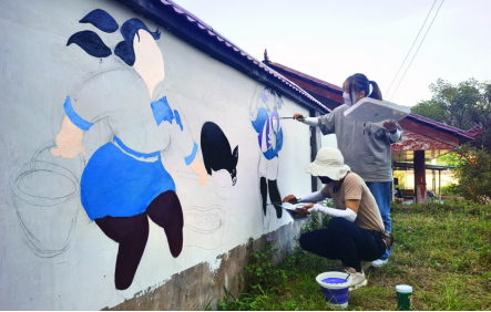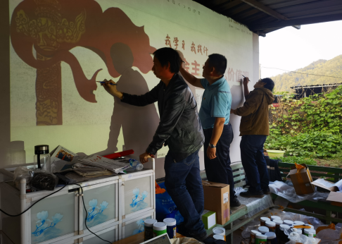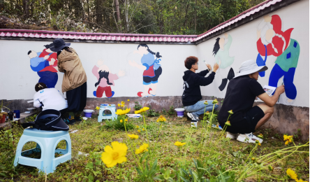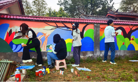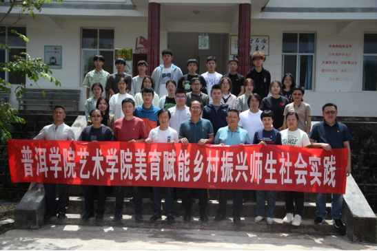在党的二十大精神指引下,艺术学院积极响应文化和旅游部、教育部等六部委联合出台了《关于推动文化产业赋能乡村振兴的意见》提出的总体要求,推动乡村振兴青春建功行动走深走实,艺术学院4个本科专业14名教师、6个团支部17名学生在艺术学院党总支书记段群勇、副院长李丽祥率领下,于2023年5月17日到镇沅县按板镇联盟村开展学习贯彻习近平新时代中国特色社会主义思想主题教育专题调研,“助力乡村振兴,彩绘联盟村”文化帮扶美育实践活动,对联盟村委会150.26平方米墙体进行彩绘,以村民喜闻乐见的方式,传播着健康文明正能量的内容,展示了新农村新生活新气象新风貌,引导乡土文化向公共文化转化,促进乡村居民文化认同,助力乡村居民的文化传承与创新。