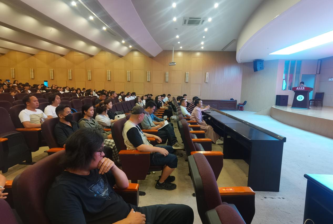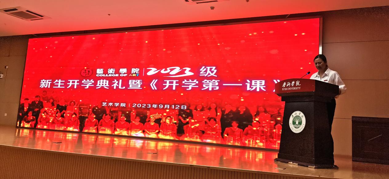 新学期伊始,艺术学院于2023年9月12日晚上18:30图书馆学术报告厅举行23级新生入学典礼暨“开学第一课”。学院全体教师与23级新生欢聚一堂,共同迎接新学期。莫培仙副院长主持并介绍艺术学院全体教师及20级各专业新生班学生。典礼在庄严的国歌声中拉开帷幕。