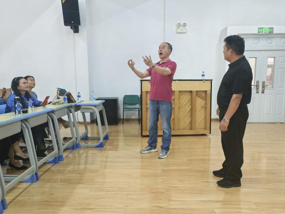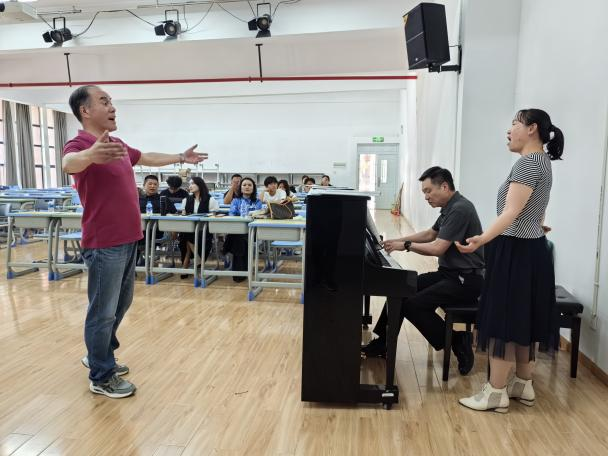 16日上午9:00-12:00,卢国文教授在韶韵楼106排练室举办了声乐公开课,声乐教研室所有教师以及部分学生参与了本次公开课。卢国文教授在公开课上生动且耐心地对师生进行授课,通过对每位师生演唱的细致分析,从歌曲结构、音乐风格和演唱技法等方面进行详细点评与指导。