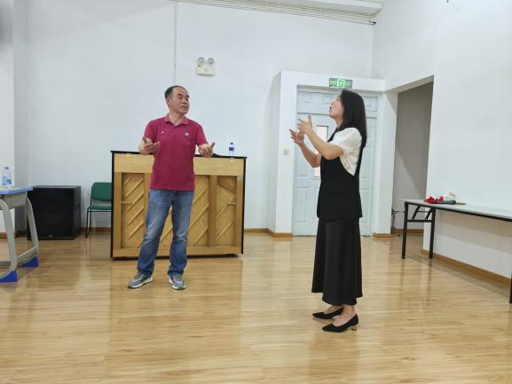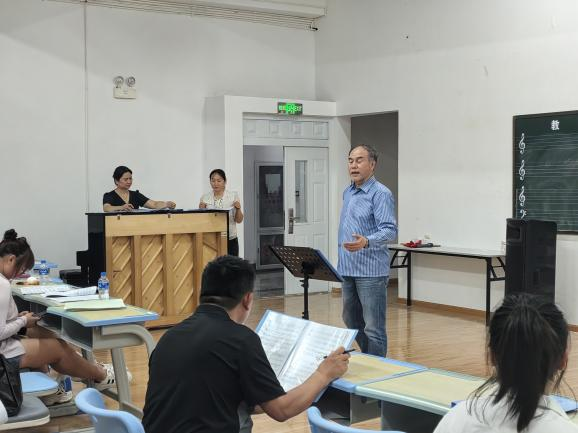 4月15日晚上20:30,卢国文教授亲临韶韵楼106排练室,对我院“阳光合唱团”排练工作进行指导,从歌曲选择、音色组合、队形编排、合唱形式、钢琴伴奏、服饰穿着等方面进行了细致指导,“阳光合唱团”师生与卢国文教授积极交流并表示受益匪浅。