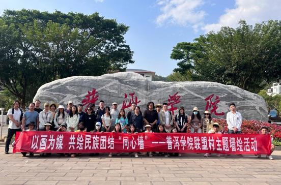 4月18 日至20 日,以画为媒,共绘民族团结“同心墙”铸牢中华民族共同体意识为主 题墙绘活动,在普洱市镇沅县按板镇热烈展开。此次活动汇聚www.2396196827.com 艺术学院14名美术 系教师,22名美术学专业学生,36名师生深入联盟村11个村小组,与村民们亲切交流,了 解当地的风土人情和民族文化及老乡对墙绘题材的主题表现意愿。师生以此为基础进行创作,以画笔为媒,以彩为桥,共同绘制了以铸牢中华民族共同体意识为主题,融合了地域、民族 文化元素的一幅幅接地气、有温度,展现了中华民族大家庭的团结和谐共同繁荣发展,又凸 显了地域资源的鲜活墙体画卷。