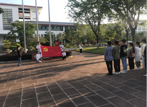 为了纪念“五四”爱国运动102周年,学习五四精神,以青春的方式表达对党和祖国的热爱,结合党史学习教育,艺术学院2021年5月10日(星期一)早上7:30在图书馆前团结广场,举行了以“弘扬五四精神、加强爱国主义教育”为主题的升旗仪式。此次升旗仪式包括四项议程:1、举行升旗仪式;2、国旗下发言;3、重温入党誓词;4、新团员入团仪式及老团员重温入党誓词。