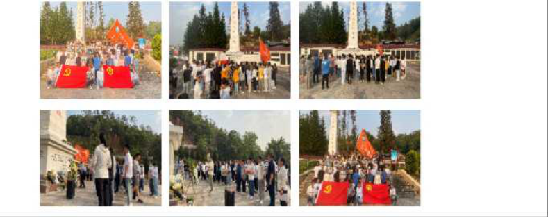 为弘扬爰国主义精神,加强爰国主义教育,清明釆临之际,艺术学院党总支开展 党建带团活动,组织全体师生党员、部分团员代表前往昔洱市梅子湖思昔革命老 区纪念碑前逬行統怀革命烈士活动。