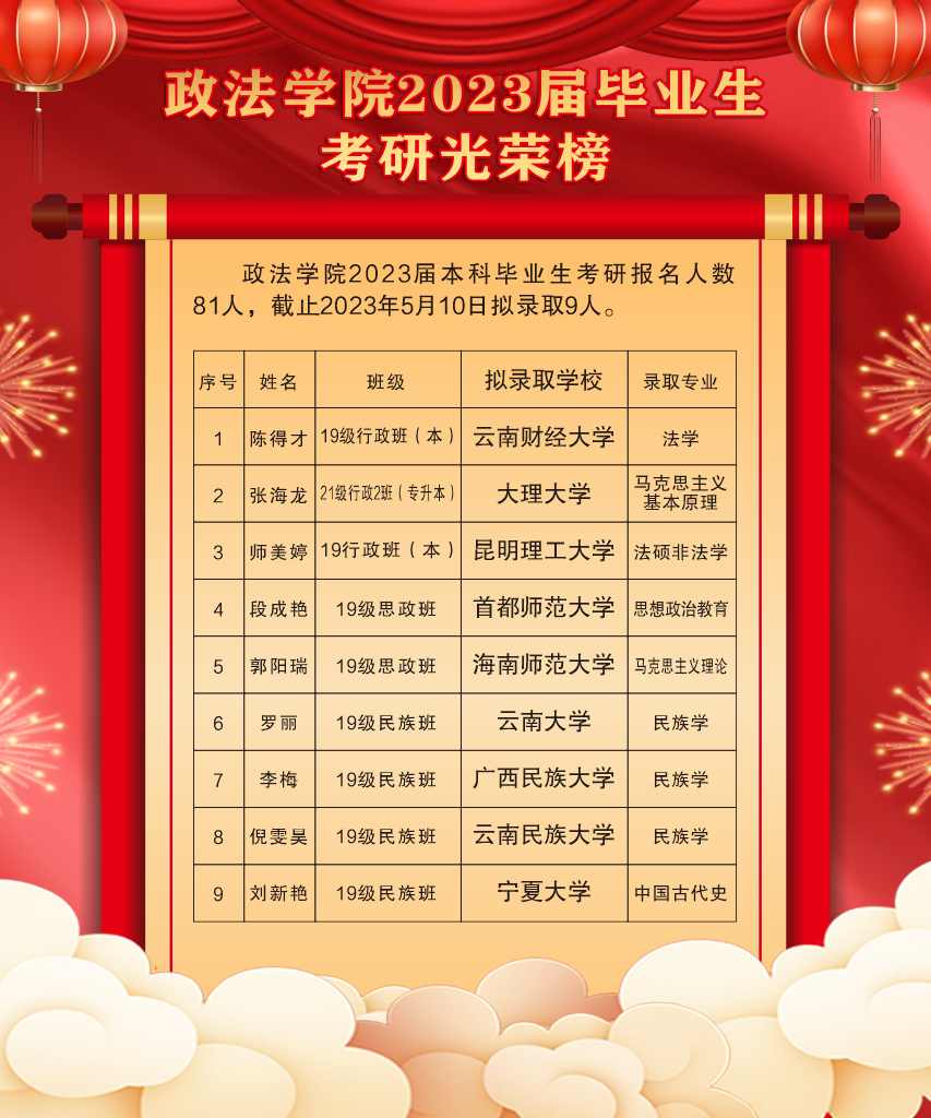 花落成实,硕果满枝。5月25日晚,政法学院在图书馆报告厅举行2023届学生毕业典礼。学院师生齐聚一堂,共同为2023届309名毕业生表示祝贺和祝福。政法学院党总支书记赵泽洪、党总支副书记、院长郭杰出席毕业典礼。...[详细]