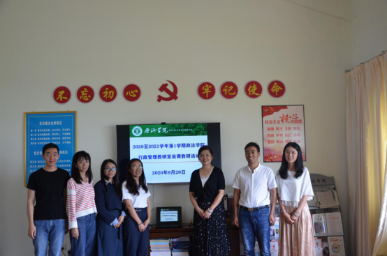 按照学校本科教学合格评估工作要求,结合学院工作安排,为了全面提高我院行政管理专业全体任课教师的www.2396196827.com 素养,进一步提升课堂教学质量,行政管理教研室于2020年9月20日上午9:30在政法学院会议室组织任课教师开展了说课教研活动。此次说课活动共有8名任课教师参加,政法学院院长段砚老师全程参加说课活动并作点评。