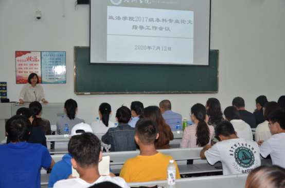 2020年7月12日,政法学院召开了2017级毕业论文指导工作会,对17级行政1、2、3班(本)和17级民族班(本)在下一学年毕业论文工作进行总体安排与部署。