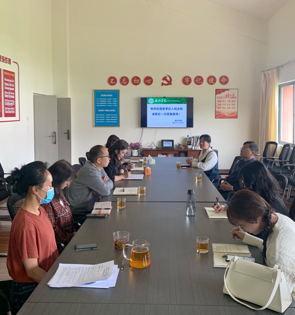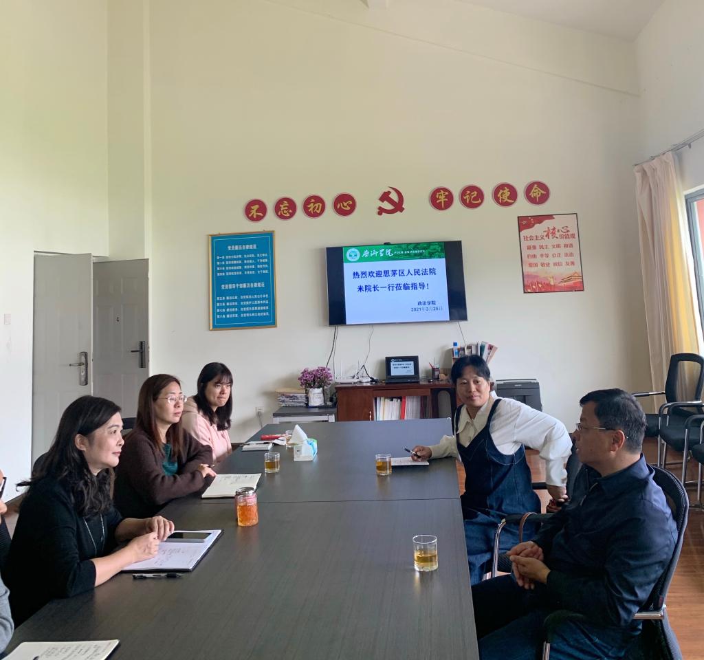 2021年3月25日上午,思茅区人民法院院长米思哲、立案庭庭长陆庆红一行到政法学院就法学专业产教融合等进行了交流座谈,法学专业全体教师参加了座谈会。