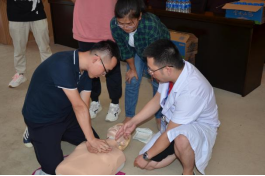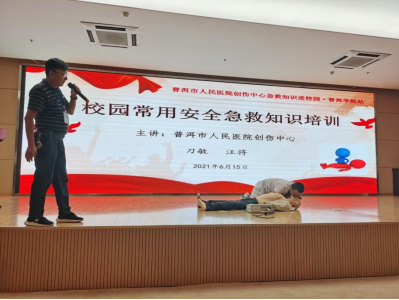 培训中,普洱市人民医院创伤中心医生通过理论讲解、示范操作、现场演练等方式,对“判断早期心脏骤停到启动急救系统”“胸外按压”“开放气道”“人工呼吸”“如何在“4-6分钟”的黄金救命时期运用徒手心肺复苏挽救生命”“自动体外除颤器的使用方法”“止血包扎步骤及注意事项”等内容进行了深入浅出地讲解,并进行了心肺复苏操作演练,手把手指导纠正现场师生在操作过程中不规范的动作,将理论与实践技能相结合,使大家真正掌握正确有效的心肺复苏手法技能。