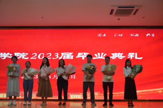 毕业典礼以22级同学啦啦操表演拉开帷幕。庄严的国歌奏唱后,赵泽洪书记发表讲话。他向全体毕业生致以热烈的祝贺,并为大家送上人生新航程的殷切寄语。他希望全体毕业生勤于学习,善于创新,努力成才。典礼上,对优秀毕业生代表进行了表彰。赵泽洪书记、郭杰院长向受表彰的毕业生代表颁发荣誉证书。毕业生代表、班主任、辅导员分别发言,祝贺、期待、感恩、惜别的氛围在现场涌动。龙文庆老师带领毕业生们,用“雨课堂”互动,重温了毕业生们在校的美好时光。最后,郭晓峰、赵国庆、倪秀三位同学领唱《这世界有这么多人》,毕业典礼在悠扬的歌声中落下帷幕。