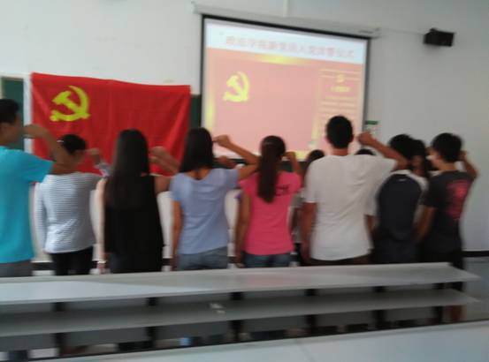 2015年6月11日,政法学院学生党支部为新党员举行了庄严的入党宣誓仪式,通过入党宣誓,对新党员进行了一次深刻的党性教育。在这次仪式上,新党员面对党旗庄严宣誓自愿加入中国共产党,愿为共产主义事业奋斗终生。