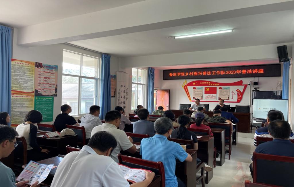 为切实做好学校乡村振兴定点帮扶挂钩联系点普法工作和推进普法强基补短板专项行动走深走实,10月14日政法学院院长郭杰一行5人深入挂联点镇沅彝族哈尼族拉祜族按板镇联盟村,与村两委和驻村工作队共同开展普法宣传活动。按板镇党委副书记、政法委员吕斌主持。