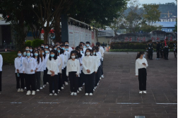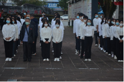 挺拔的身姿,坚定的目光,国防后备连的护旗手们昂首挺胸迈着整齐的步伐,将国旗护送至升旗台。伴随着雄壮的国歌声,鲜艳的五星红旗冉冉升起在校园上空。